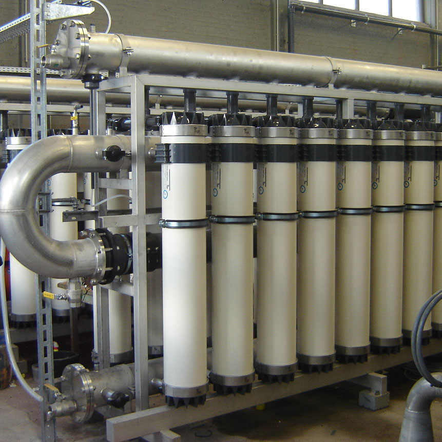 The structure of membranes is in the form of a capillary pipe and they work according to the cross-flow method. Raw water entering the capillary tubes passes through 0.01 micron sized pores on the membrane’s surface serving as a barrier for bacteria, viruses and other microorganisms thus allowing for water purification without the use of chemicals.